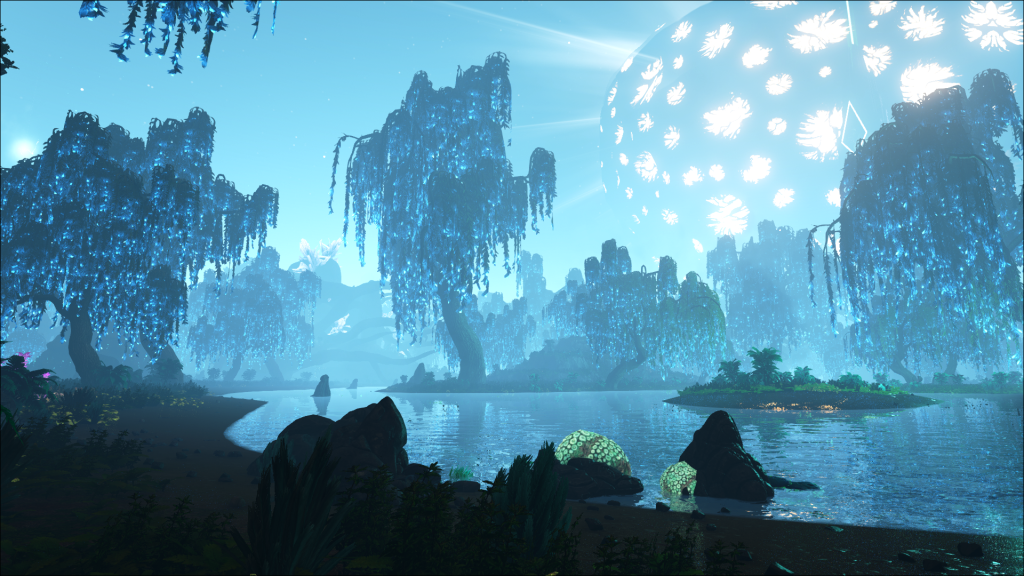 Die unerforschte ARK TaeniaStella ist durch die Erosion des parasitären Meteoriten Rizaria mutiert. Diese Erosion hat zu einer starken Verformung der Erdoberfläche geführt: Der konvexe Teil löst sich auf und kristallisiert, wodurch ein Kratergebirge entsteht, während der konkave Teil tief in den Untergrund der ARK sinkt. Die unterirdischen Hohlräume und leuchtenden Ökosysteme wurden durch den Einschlag angehoben und freigelegt, und später mutierten sie zu einzigartigen Ökosystemen.