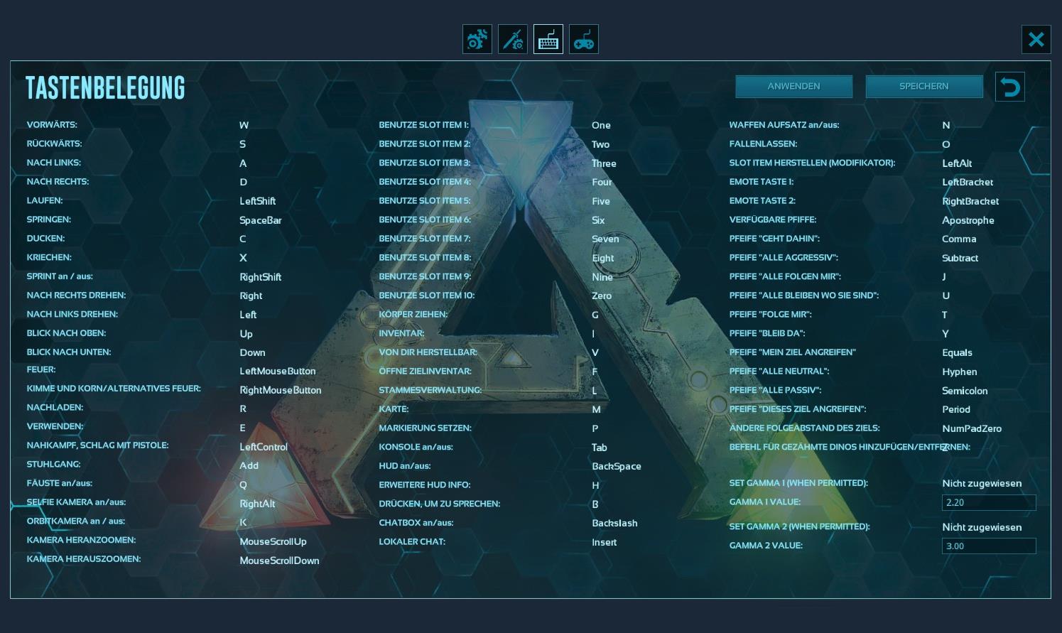 Weiteres auch auf https://ark.wiki.gg/wiki/Controls