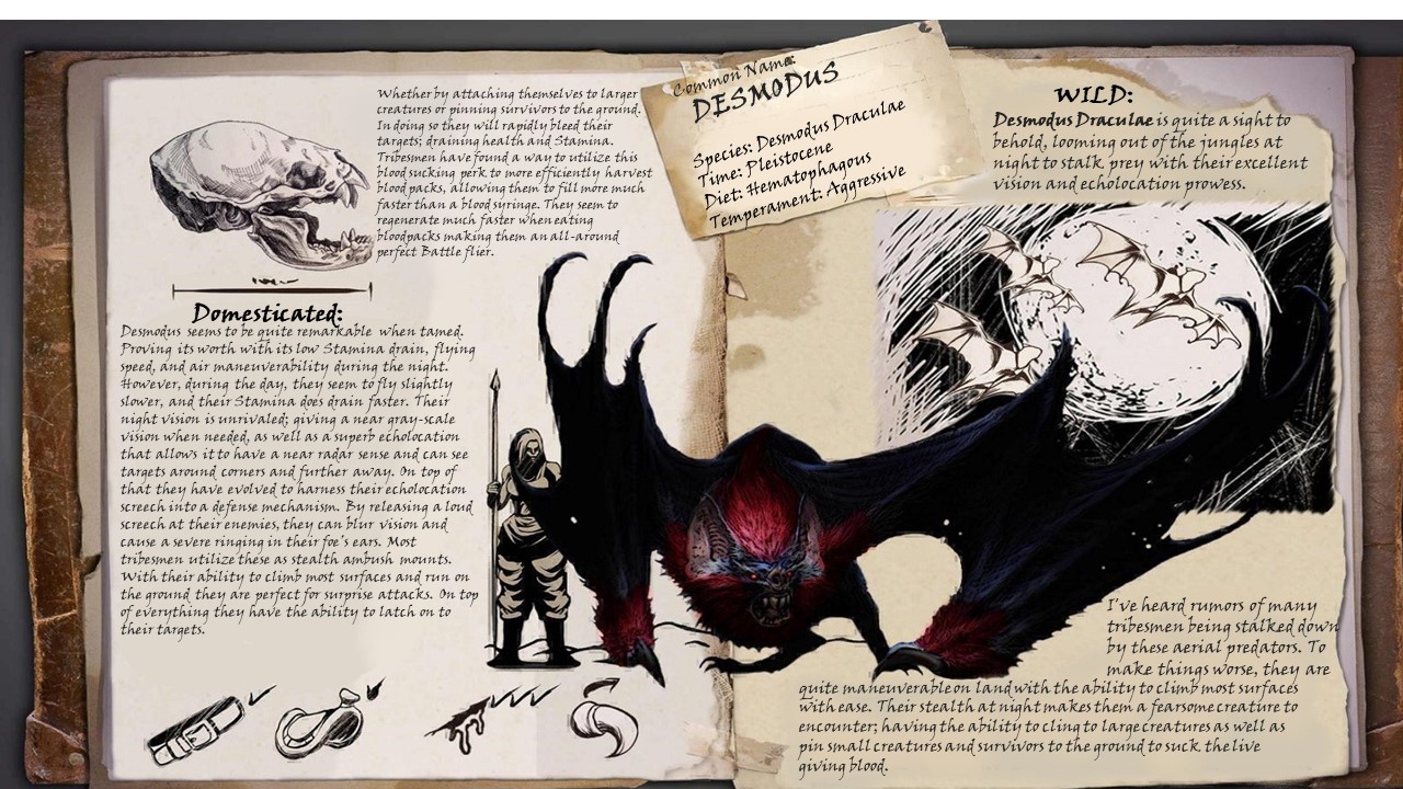 Mit über 60'000 Stimmen gewinnt der "Desmodus Draculae" den zweiten Community Creature Vote! In der kommenden Woche soll das Konzept und das Dossier zu dem neuen Bewohner von ARK vergestellt werden. Ein paar mögliche Ideen sind hier in der Gallery hochgeladen (siehe auch den offiziellen Vorschlag auf SuriveTheArk.com, Ersteller ist Shadowenigma250x)