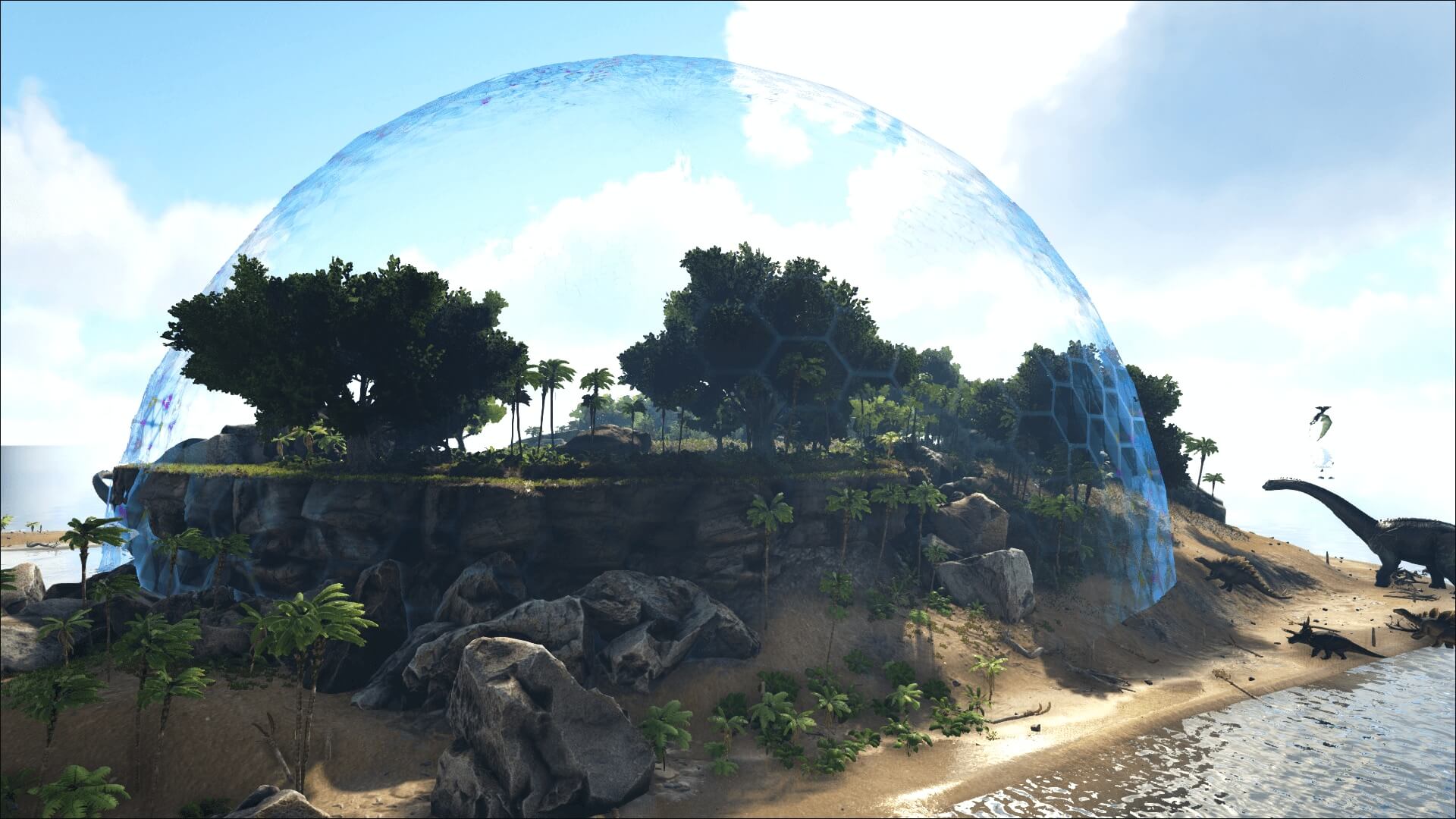 Baue dir direkt ab Level 5 eine "SafeBase Forcefield". Dieses kannst du beliebig platzieren, und es schützt deine Basis vor wilden Tieren und feindlichen Spielern. Nachdem du das Shield platziert hast, lege etwas Holz hinein, halte die E-Taste gedrückt (schaue dabei auf das Shield), gehe zu "Radius Options" und wähle "Increase to Maximum Radius 10x". Anschliessend kannst du es mit der E-Taste (Barrier aktivieren) einschalten und es wird auf maximale Größe erweitert. Das Shield darf nur einmal platziert werden und dient ausschliesslich dem Schutz deiner Hauptbasis auf "The Island" oder "Ragnarok".